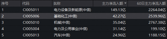 资金面上,化工板块持续吸金。数据显示,截至发稿,基础化工板块单日获主力资金净流入额超过42亿元,净流入额在30个中信一级行业中高居第2;近60日,基础化工板块累计吸金额更是高达2539亿元,净流入额在30个中信一级行业中位居第3。