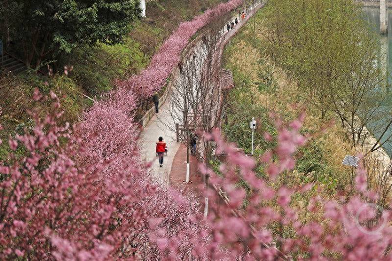 3月2日,重庆市彭水苗族土家族自治县滨江河堤上美人梅盛开,将城市装点得春意盎然。市民们徜徉花间,健身、休闲、娱乐,尽享春日时光。一个个口袋公园不仅扮靓了城市风景线,更成为市民身边的“幸福乐园”。